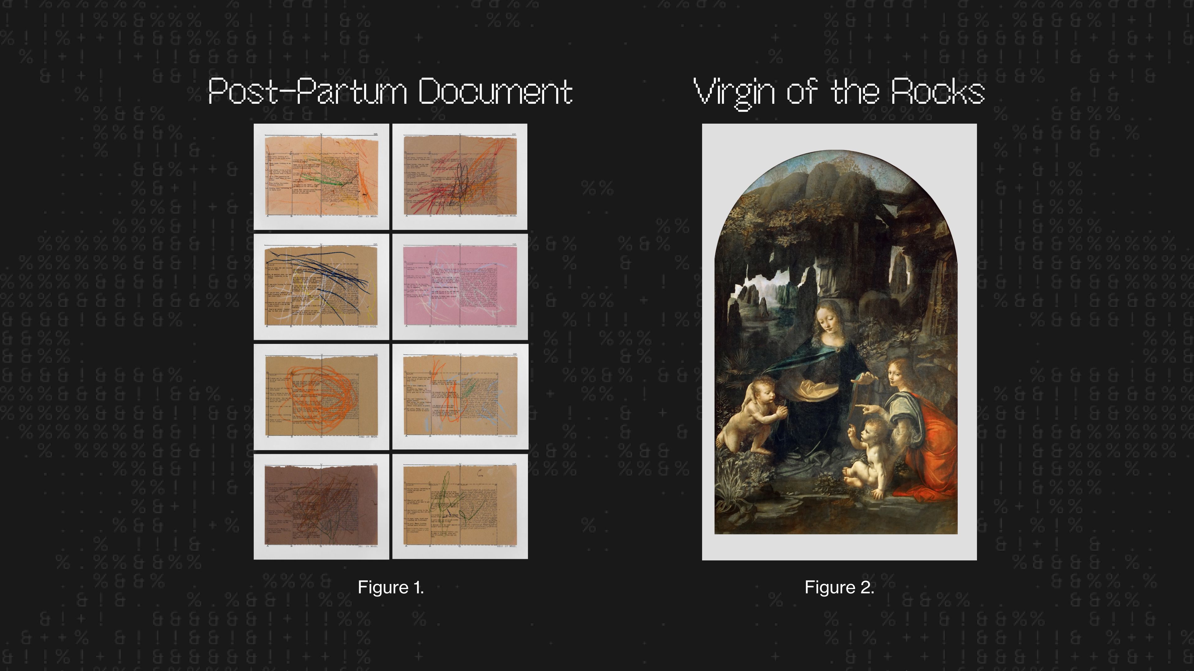 Consider the difference between these two artworks about motherhood: Leonardo da Vinci's Virgin of the Rocks versus Mary Kelly's Post-Partum Document. Da Vinci's painting fits within Renaissance religious traditions, responding to cultural conversations of his time. On the other hand, Kelly's conceptual work features framed, transcripts colored on by her child to convey the raw emotional complexity of motherhood from her own lived experience. As Dr. Milena Ivanova at Cambridge points out, Kelly's work communicates authentic maternal experience in a way that Da Vinci's idealized vision never could. Both are art because human creators used their imagination. Each artist's imagination was shaped by their unique experiences, sensations, feelings, and thoughts—all of which informed their work.
